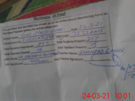 | EMIS Code: 32320015 | Name of School: GHS HAJI SHAH | |||