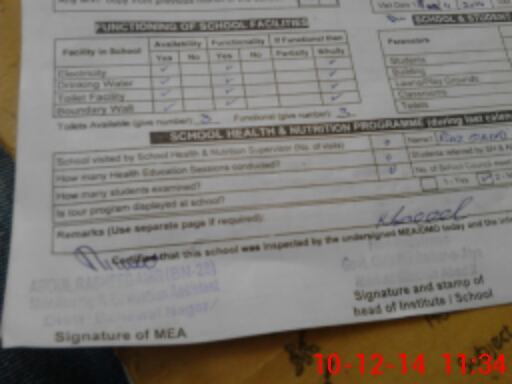 | Facility in School | Availability | Functionality | If Functional then | ||||||||