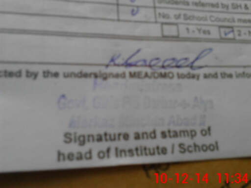 | Certified that this School was Inspected by the Undersigned MEA/DMO Today and the Information Stated Above is as Per Record. | |||||