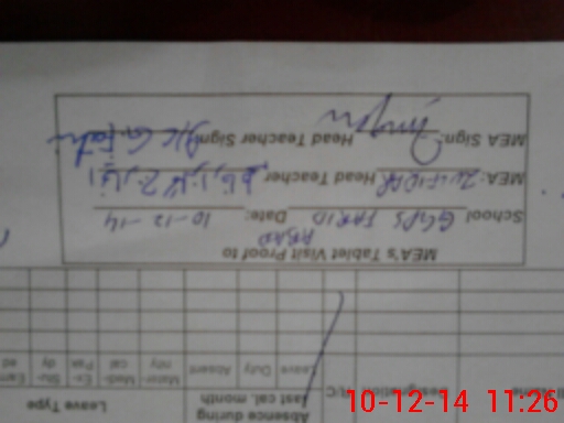| Attendance Register | Head Teacher | MEA with School | Visit Proof |