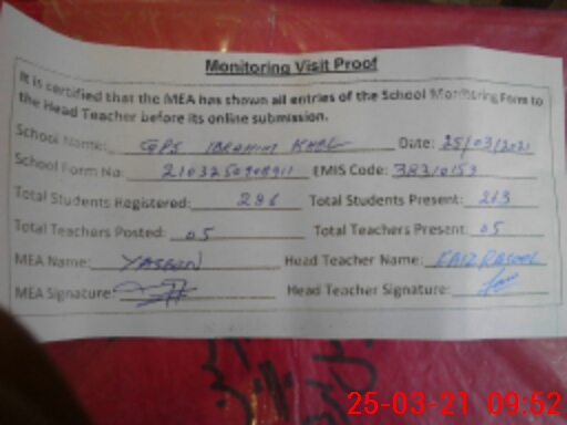| EMIS Code: 38310153 | Name of School: GPS IBRAHIM KHEL PO TRAGH ISA KHEL MIANWALI | |||