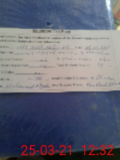 | School Visited by School Health & Nutrition Supervisor (No. of Visits) | Name1: | Nil | Name2: | ||
