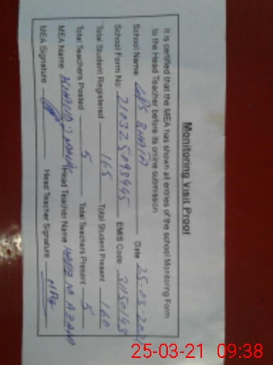 | Certified that this School was Inspected by the Undersigned MEA/DMO Today and the Information Stated Above is as Per Record. | |||||