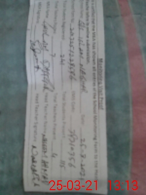 | Certified that this School was Inspected by the Undersigned MEA/DMO Today and the Information Stated Above is as Per Record. | |||||