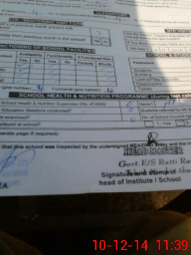 | Certified that this School was Inspected by the Undersigned MEA/DMO Today and the Information Stated Above is as Per Record. | |||||