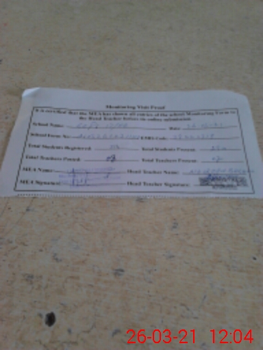 | Attendance Register | Head Teacher | MEA with School | Visit Proof |