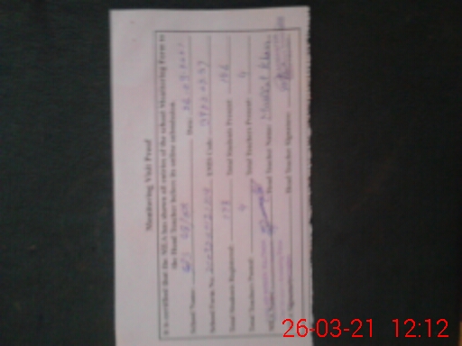 | School Visited by School Health & Nutrition Supervisor (No. of Visits) | 1 | Name1: | KASHIF BASHIR | Name2: | |