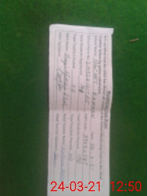 | Monitoring Date: 24-03-2021 | Start Time: 24-03-2021 12:16 PM | End Time: 24-03-2021 12:51 PM | Name of MEA: BA**** HU**** SH**** | |