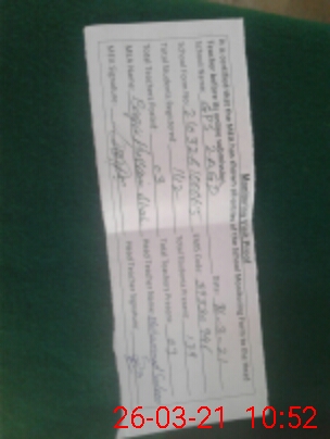 | Monitoring Date: 26-03-2021 | Start Time: 26-03-2021 10:00 AM | End Time: 26-03-2021 10:53 AM | Name of MEA: BA**** HU**** SH**** | |