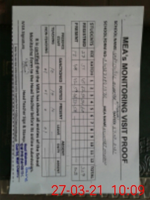 | Monitoring Date: 27-03-2021 | Start Time: 27-03-2021 08:37 AM | End Time: 27-03-2021 10:11 AM | Name of MEA: Mu**** Hu**** on11**** | |