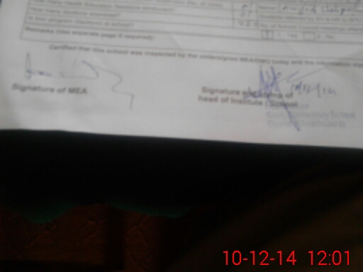 | Certified that this School was Inspected by the Undersigned MEA/DMO Today and the Information Stated Above is as Per Record. | |||||