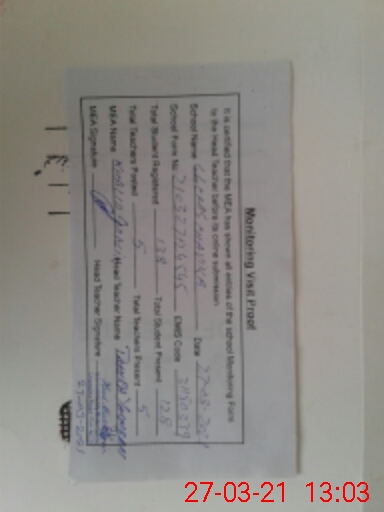 | Monitoring Date: 27-03-2021 | Start Time: 27-03-2021 12:45 PM | End Time: 27-03-2021 01:03 PM | Name of MEA: Mu**** Kh**** BN**** | |