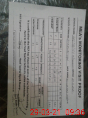 | Attendance Register | Head Teacher | MEA with School | Visit Proof |