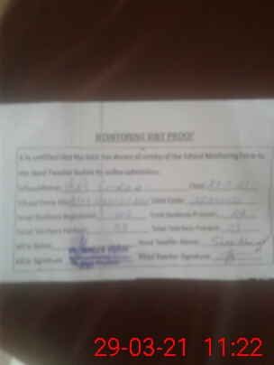| Attendance Register | Head Teacher | MEA with School | Visit Proof |