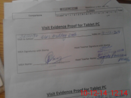 | Attendance Register | Head Teacher | MEA with School | Visit Proof |