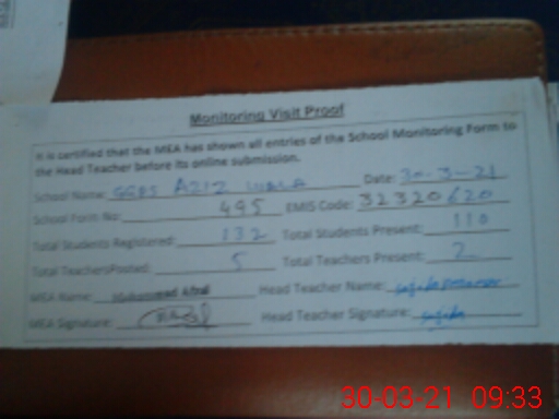 | EMIS Code: 32320620 | Name of School: GGPS AZIZ WALA | |||