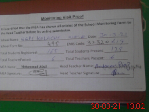 | EMIS Code: 32320619 | Name of School: GGPS KOLACHI WALA | |||