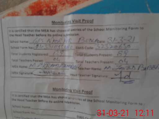 | EMIS Code: 32320650 | Name of School: GPS NOOR PUR BODLA | |||