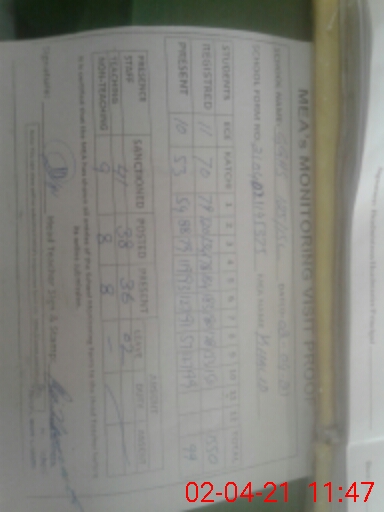 | Attendance Register | Head Teacher | MEA with School | Visit Proof |