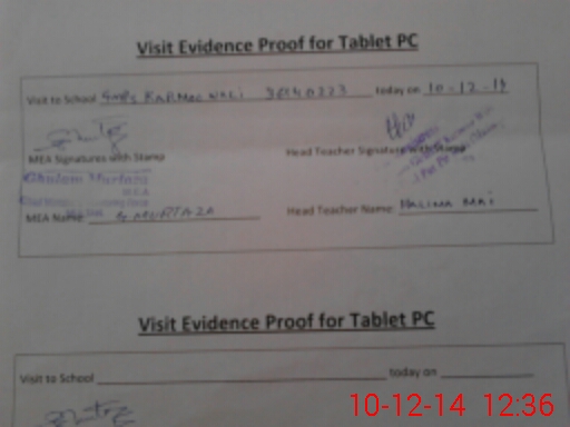 | Attendance Register | Head Teacher | MEA with School | Visit Proof |