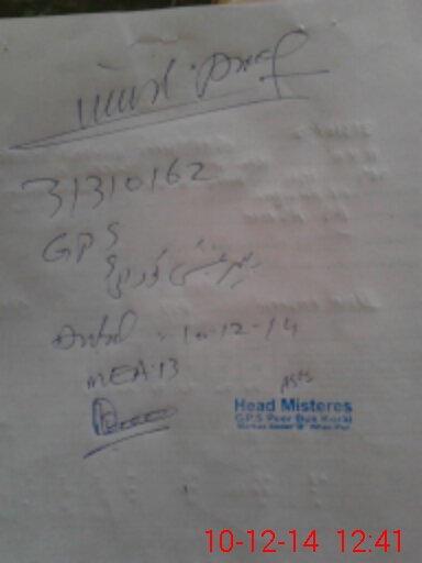 | EMIS Code: 31310162 | Name of School: GPS PEER BUX KORAI (After Noon) | |||