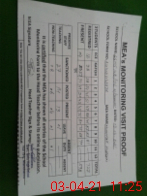 | Attendance Register | Head Teacher | MEA with School | Visit Proof |