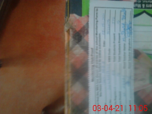 | School Visited by School Health & Nutrition Supervisor (No. of Visits) | 1 | Name1: | HAFIZ MAHMOOD | Name2: | NIL |