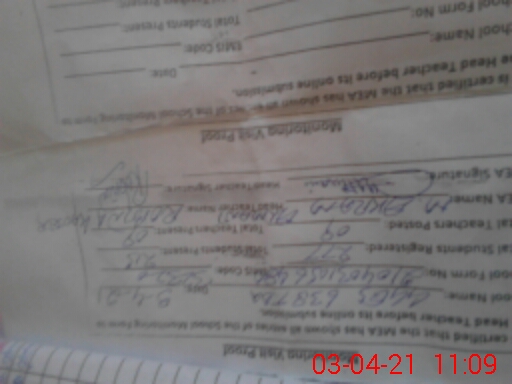 | Name: Ta**** Ya**** Designation: (School Headmaster's/Headmistress's) SSE Phone/Cell Number: 03**** |