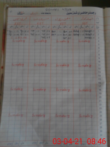| CNIC | Full Name | Designation | R/C | Absence During Last Calender Month |