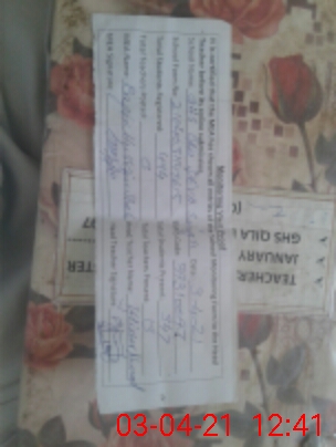 | Name: IF**** AH**** Designation: (School Headmaster's/Headmistress's) SST INCHARGE HM Phone/Cell Number: 03**** |