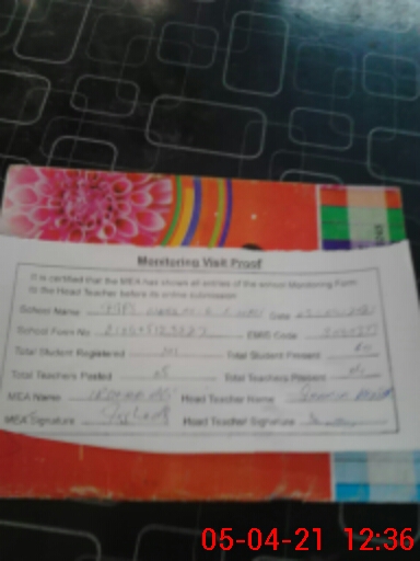 | Attendance Register | Head Teacher | MEA with School | Visit Proof |