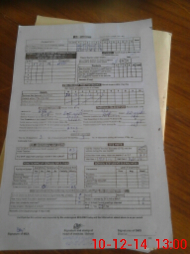 | Monitoring Date: 10-12-2014 | Start Time: 10-12-2014 12:55 PM | End Time: 10-12-2014 01:01 PM | Name of MEA: Ri**** Hu**** | |