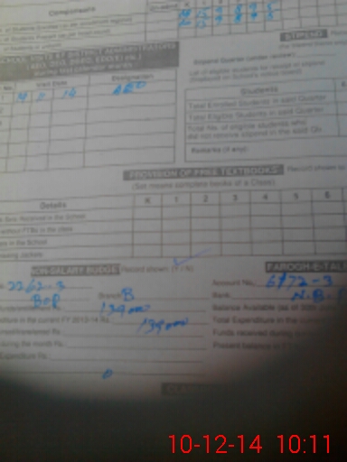 | Name: EJ**** Pe**** Designation: (School Headmaster's/Headmistress's) HEADMASTER Phone/Cell Number: 03**** |