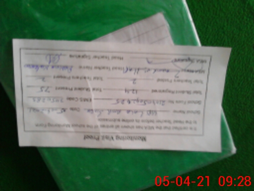 | Monitoring Date: 05-04-2021 | Start Time: 05-04-2021 09:05 AM | End Time: 05-04-2021 09:28 AM | Name of MEA: Za**** BN**** | |