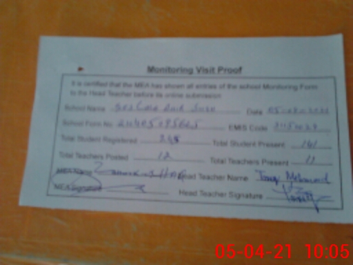 | Certified that this School was Inspected by the Undersigned MEA/DMO Today and the Information Stated Above is as Per Record. | |||||