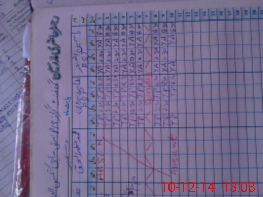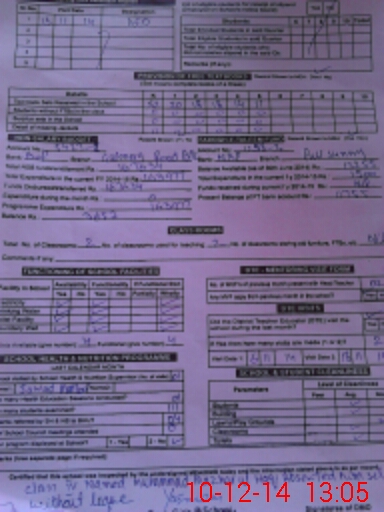 | Total no. of Classrooms: 2 No. of Classrooms Used for Teaching: 2 No. of Classrooms Storing Old Furniture, FTBs, etc: 0Comments if Any: CLASS IV NAMED MUHAMMAD MAZHAR UL HAQ ABSENTED HIM SELF WITHOUT LEAVE WEF 30TH MAY 2014 |