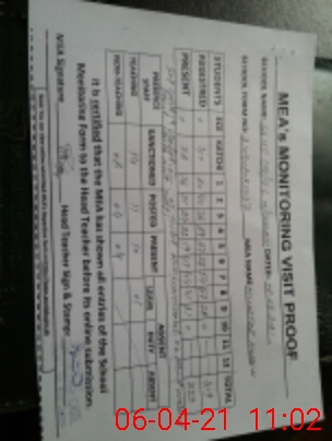 | Attendance Register | Head Teacher | MEA with School | Visit Proof |