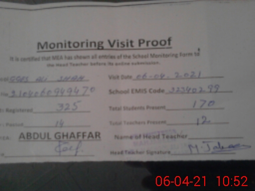| EMIS Code: 32340299 | Name of School: GGES ALI SHAH | |||