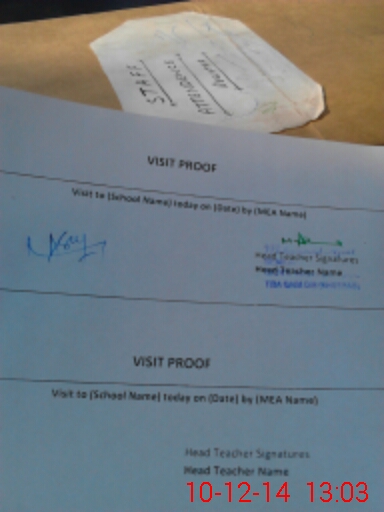 | Attendance Register | Head Teacher | MEA with School | Visit Proof |