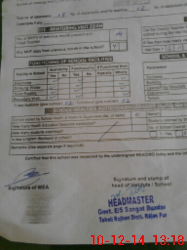 | Certified that this School was Inspected by the Undersigned MEA/DMO Today and the Information Stated Above is as Per Record. | |||||