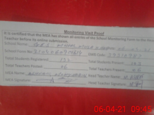 | EMIS Code: 39310987 | Name of School: GES MOHAL MUSA KHAN | |||