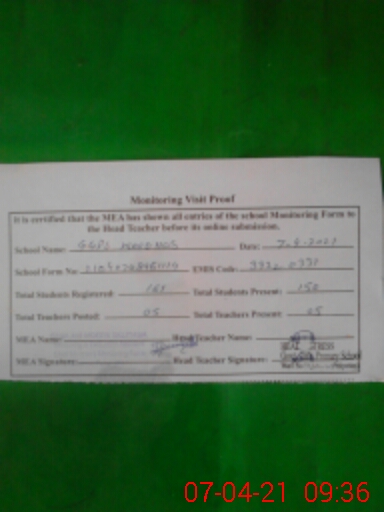 | Monitoring Date: 07-04-2021 | Start Time: 07-04-2021 08:45 AM | End Time: 07-04-2021 09:36 AM | Name of MEA: Gh**** Mu**** Mu**** (R**** | |