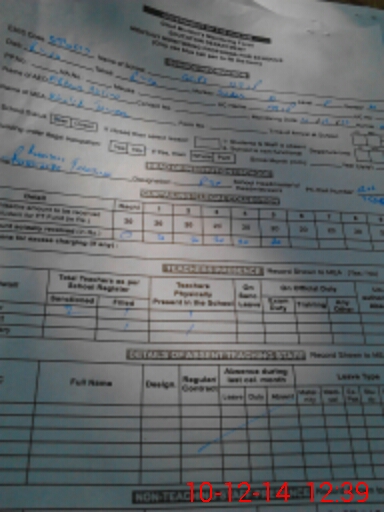 | Monitoring Date: 10-12-2014 | Start Time: 10-12-2014 12:24 PM | End Time: 10-12-2014 12:40 PM | Name of MEA: Kh**** Ta**** | |