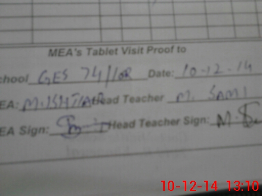 | Attendance Register | Head Teacher | MEA with School | Visit Proof |