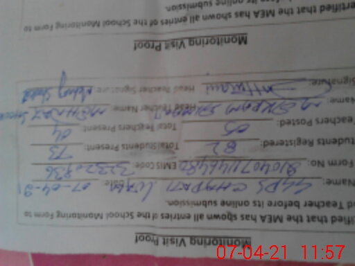 | Monitoring Date: 07-04-2021 | Start Time: 07-04-2021 11:30 AM | End Time: 07-04-2021 11:57 AM | Name of MEA: M.Ak**** Al**** | |