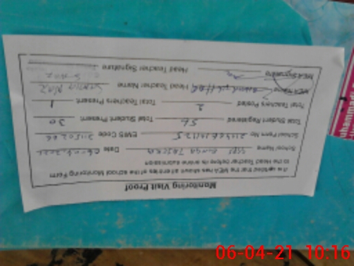 | Attendance Register | Head Teacher | MEA with School | Visit Proof |