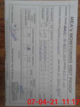| Monitoring Date: 07-04-2021 | Start Time: 07-04-2021 10:28 AM | End Time: 07-04-2021 11:29 AM | Name of MEA: M.Ta**** Iq**** (S**** | |