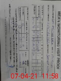 | Monitoring Date: 07-04-2021 | Start Time: 07-04-2021 10:45 AM | End Time: 07-04-2021 12:06 PM | Name of MEA: Sh**** Na**** | |