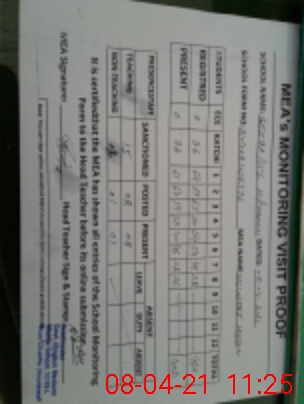 | Attendance Register | Head Teacher | MEA with School | Visit Proof |