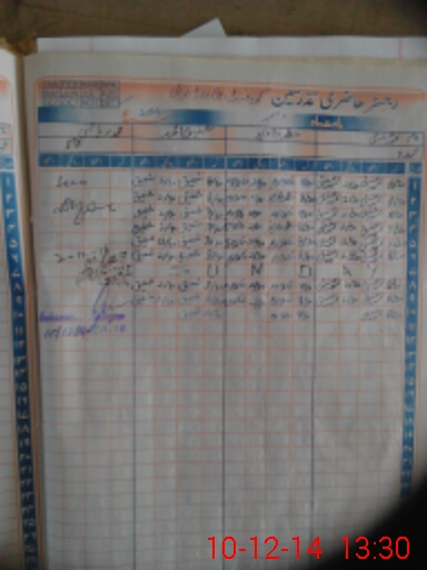 | CNIC | Full Name | Designation | R/C | Absence During Last Calender Month |